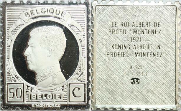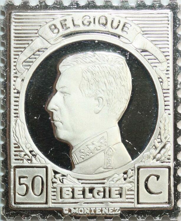 R0045 Belgium Timbre Monnaie 50 Centimes Roi Albert Montenez 1921 Silver