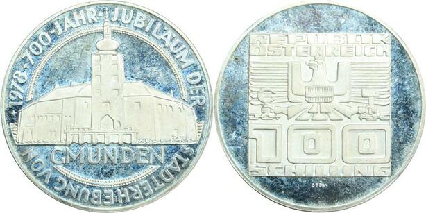 R0071 Austria 100 Schilling 700 ans Gmunden 1978 Silver Proof -> Make Offer