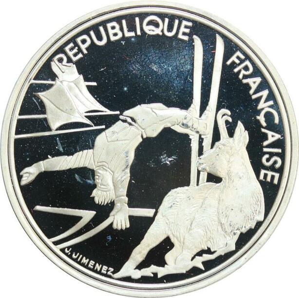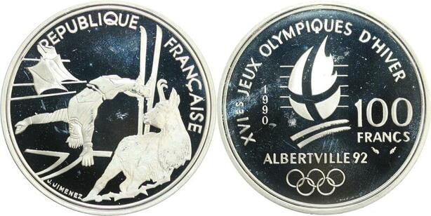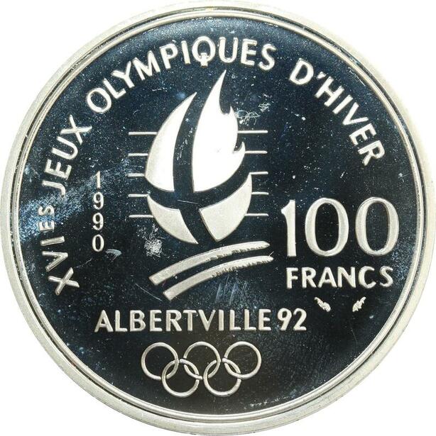 R0077 France 100 Francs Albertville 92 Ski acrobatique 1990 Silver Proof