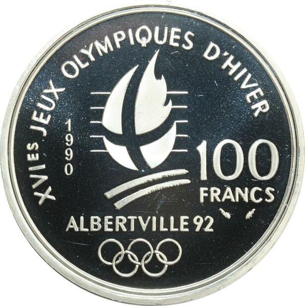 R0079 France 100 Francs Albertville 92 Bobsleigh 1990 Silver Proof - Offer