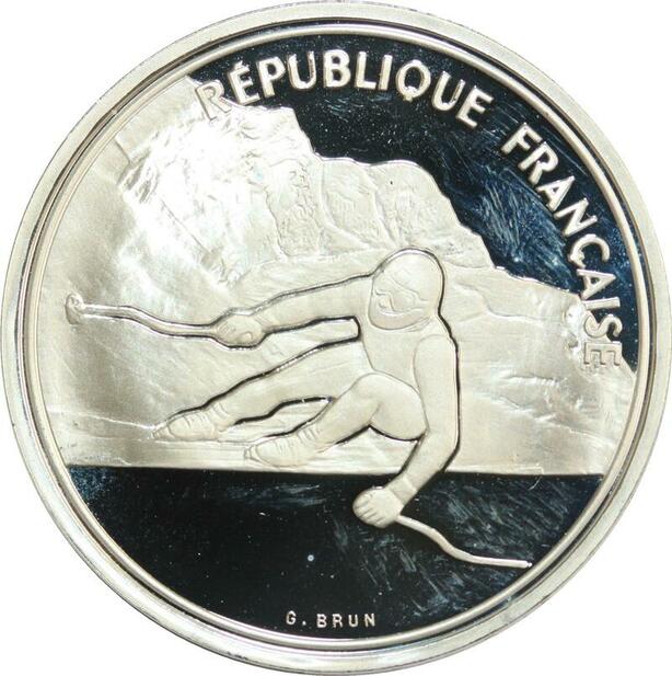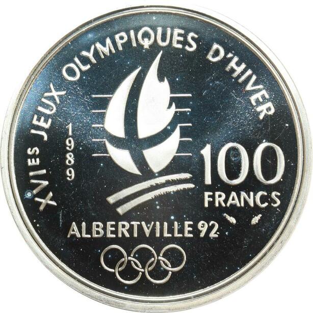 R0080 France 100 Francs Albertville 92 Ski de descente 1990 Silver Proof