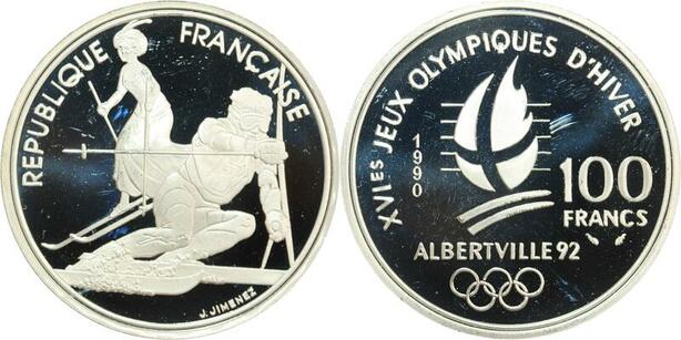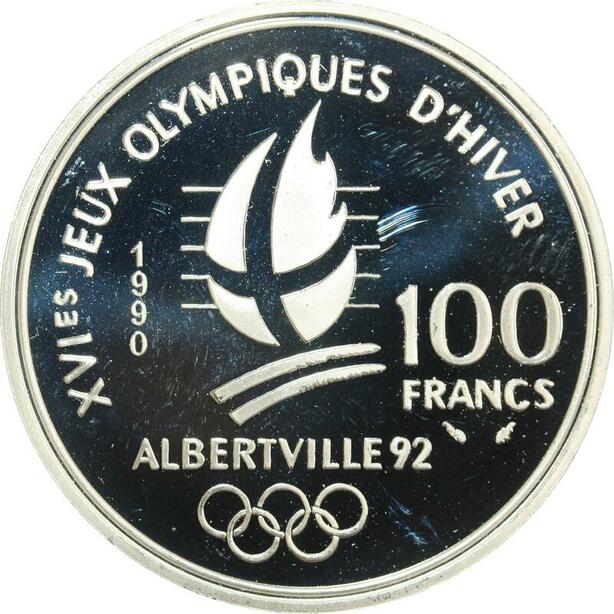 R0085 France 100 Francs Albertville 92 Slalom 1990 Silver Proof Make Offer