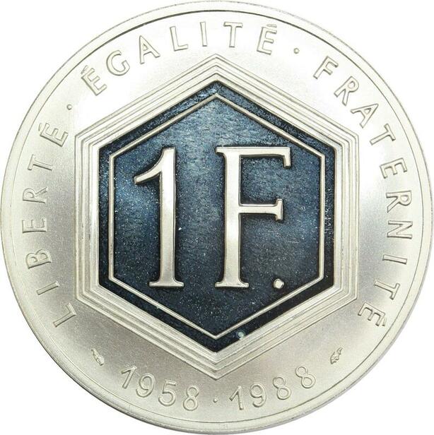 R0104 France 1 Franc De Gaulle 1958 1988 Silver Proof BE -> Make Offer