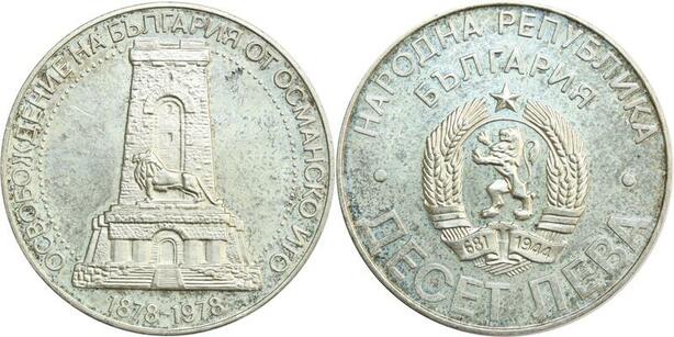 R0138 Bulgaria 10 Leva Liberation Ottoman Empire 1878 1978 Silver UNC