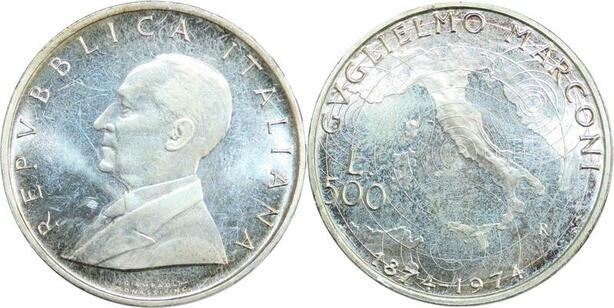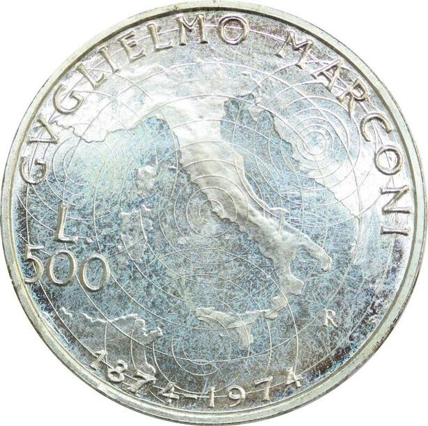 R0139 Italy 500 Lire Guglielmo Marconi 1974 Silver UNC GEM ->Make offer