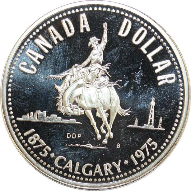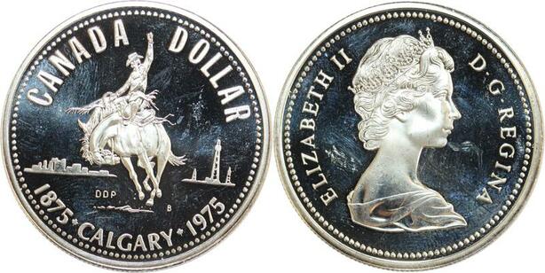 R0178 Canada Dollar Elizabeth II 1875 1975 Calgary Proof Like Silver UNC > Offer