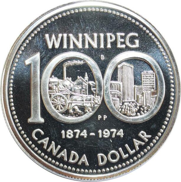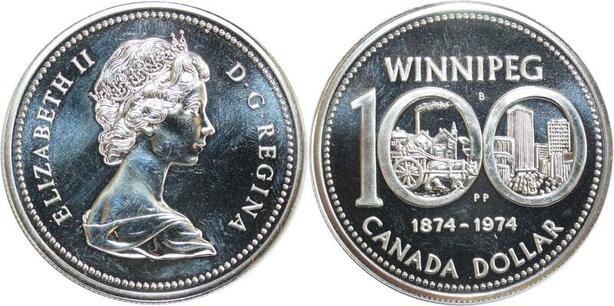R0190 Canada Dollar Queen Elizabeth II Winnipeg 1874-1974 Silver Proof