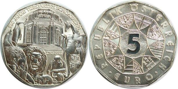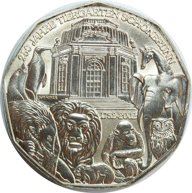 R0198 Austria 5 Euros Zoo Schönbrunn 1752-2002 Silver UNC ->Make Offer