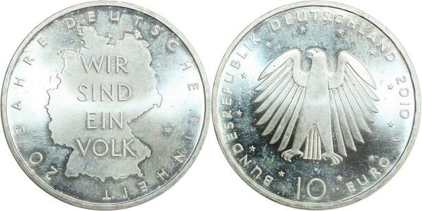 R0205 Germany Deutschland 10 Euros Wir Sind Ein Volk Silver 2010 UNC