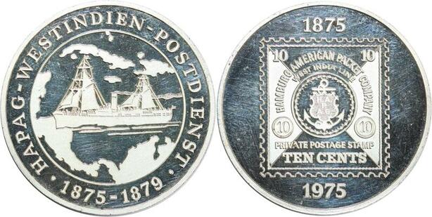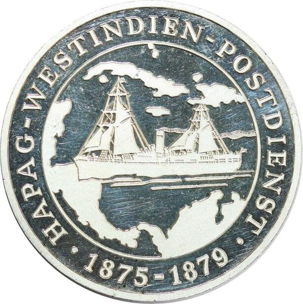 R0222 Medal Germany Hapag Westindien Postdienst Ship 1975 Silver Proof