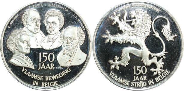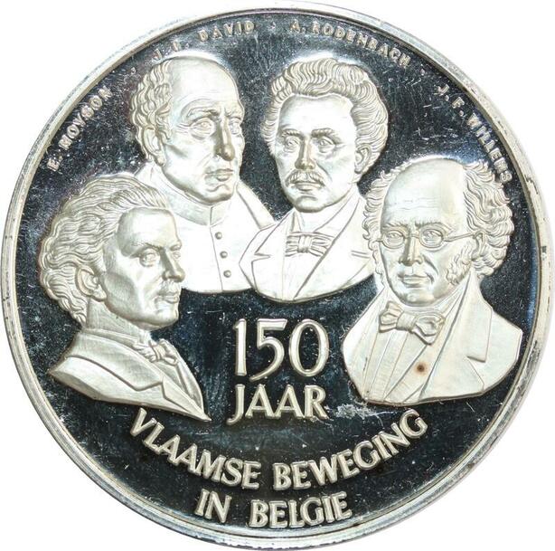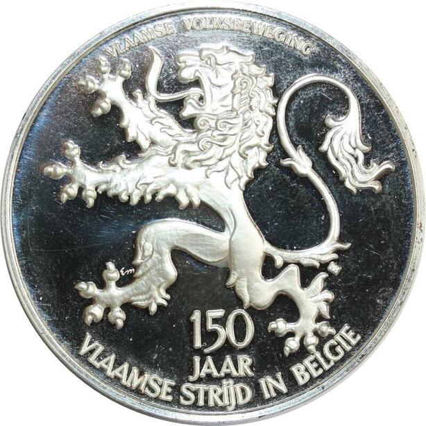 R0229 Belgium Medal 150 Jaar Vlaamse Beweging in België Lion Silver Proof