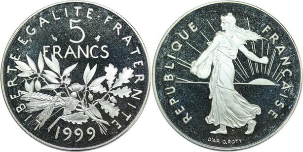 R0314 France 5 Francs Semeuse Roty 1999 Sortie Coffret BE Proof