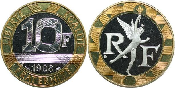 R0317 France 10 Francs Génie de la Bastille 1998 Sortie Coffret BE Proof