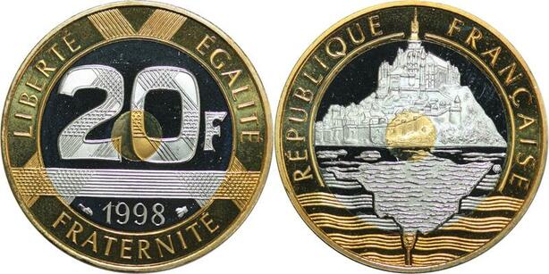 R0320 France 20 Francs Mont Saint Michel 1998 Sortie Coffret BE Proof