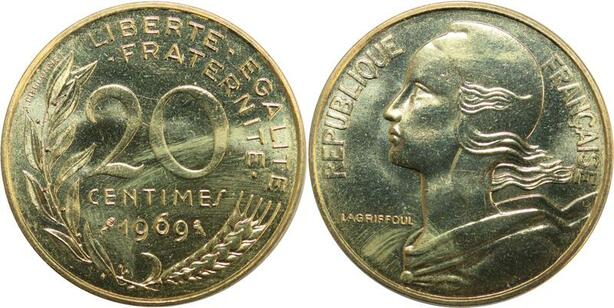 R0343 France 20 Centimes Marianne Lagriffoul 1969 sortie du coffret SPL