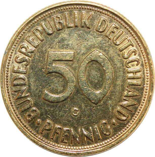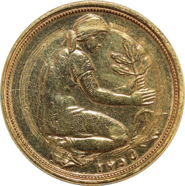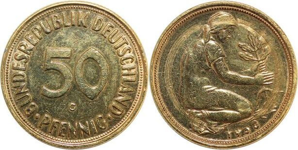 R0356 Germany 50 Pfennig 1950 G Vergoldet Gold Plated AU -> Make Offer