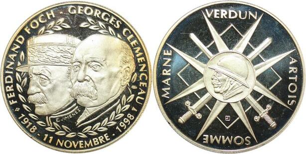 R0383 Médaille Maréchal Foch Clemenceau Marne Verdun Artois Somme 1998 Proof