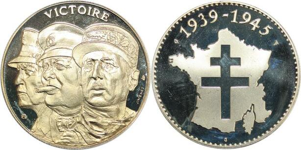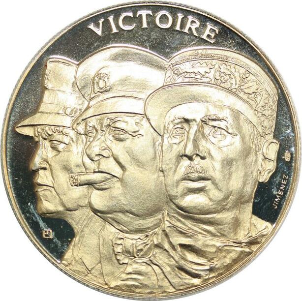 R0387 Médaille Victoire 1945 Roosevelt Churchill Général de Gaulle UNC