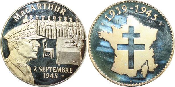 R0388 Médaille Victoire Capitulation Japon Général Mac Arthur 1945 Proof