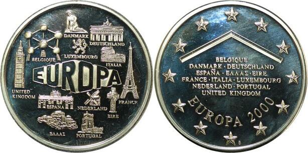 R0419 Médaille Monuments Europe Mur de Berlin Tour Eiffel Big Ben 2000