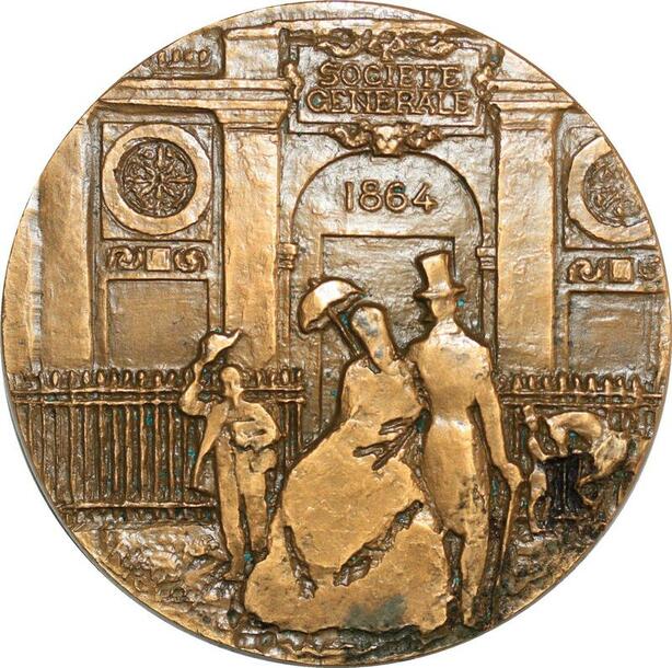 R0428 Medaille France 100ans Société Générale Banque Banksters 1864 1964