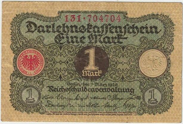 R0543 Germany Banknote 1 Mark 1920 -> Make Offer