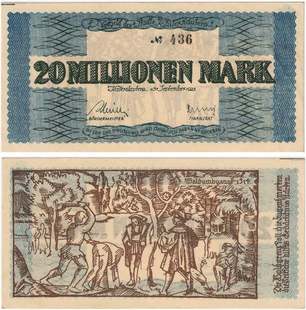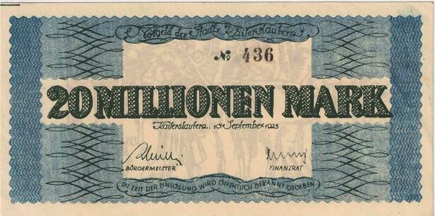 R0550 Rare Germany Banknote Kaiserslautern 20 Millionen Mark 1923 N°436 UNC