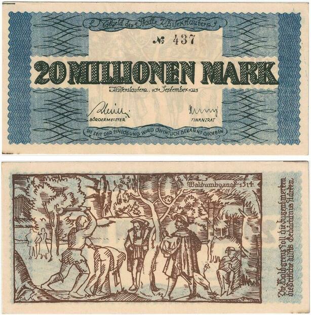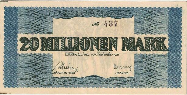 R0551 Rare Germany Banknote Kaiserslautern 20 Millionen Mark 1923 N°437 UNC