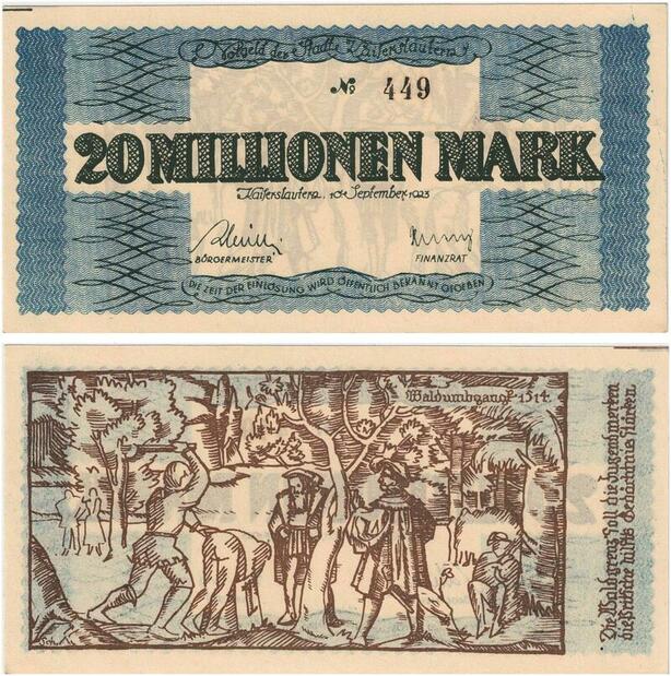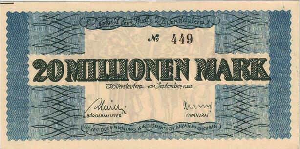 R0561 Rare Germany Banknote Kaiserslautern 20 Millionen Mark 1923 N°449 UNC