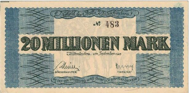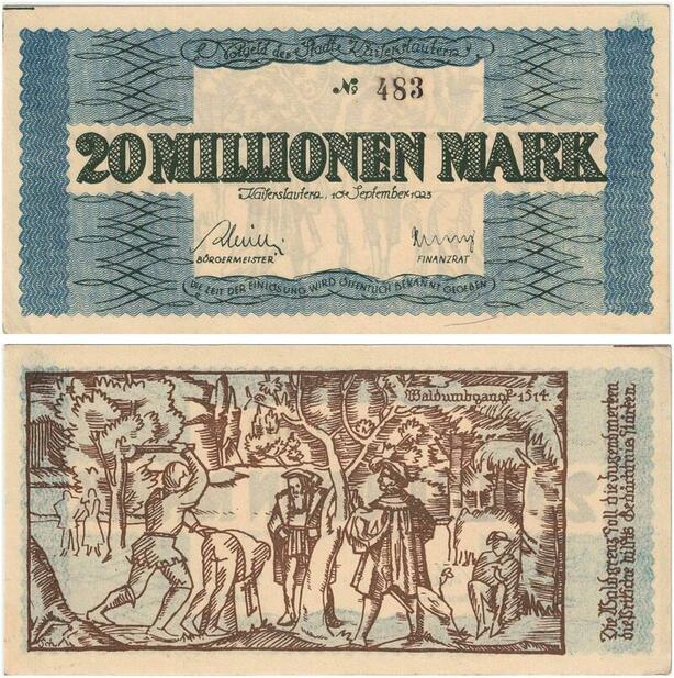 R0571 Rare Germany Banknote Kaiserslautern 20 Millionen Mark 1923 N°483 UNC