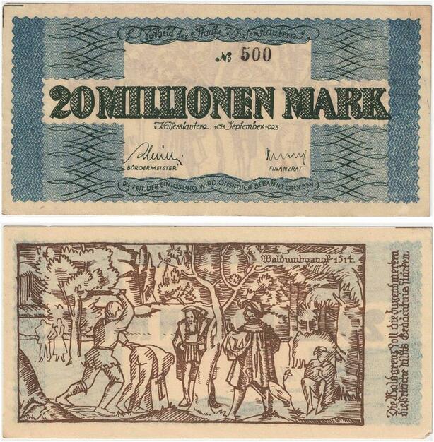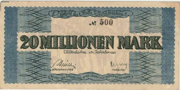 R0572 Rare Germany Banknote Kaiserslautern 20 Millionen Mark 1923 N°484 UNC
