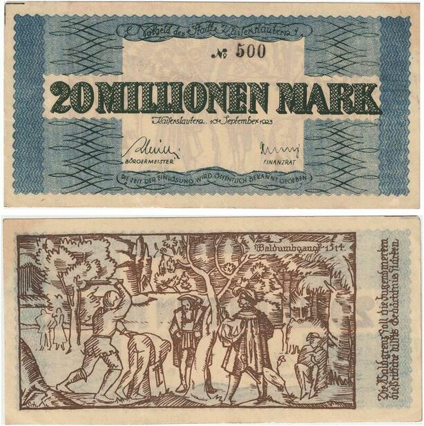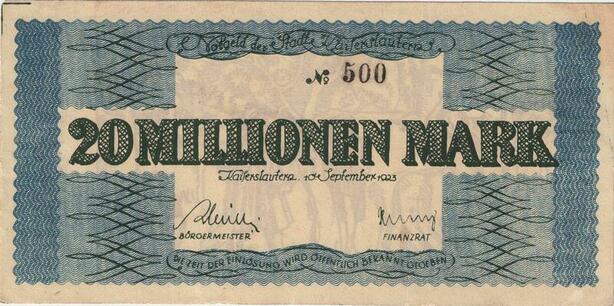 R0573 Rare Germany Banknote Kaiserslautern 20 Millionen Mark 1923 N°500 UNC
