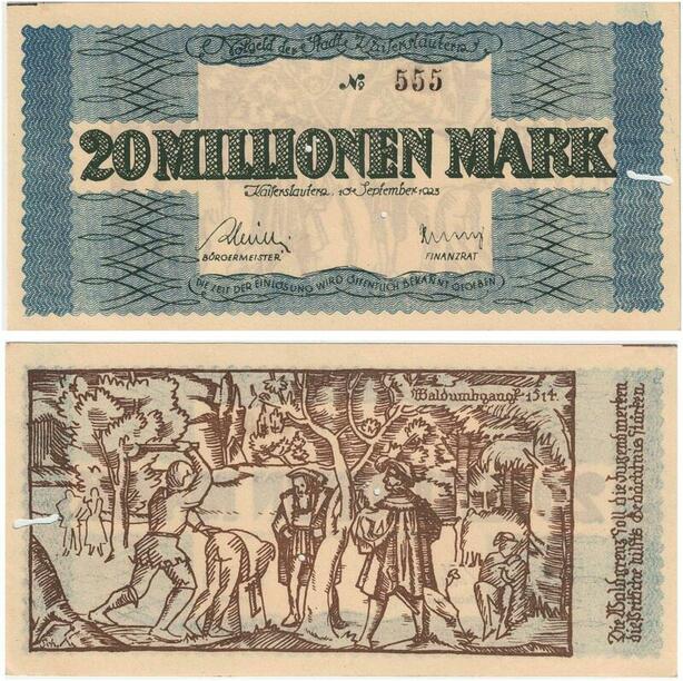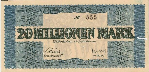 R0575 Rare Germany Banknote Kaiserslautern 20 Millionen Mark 1923 N°555 UNC