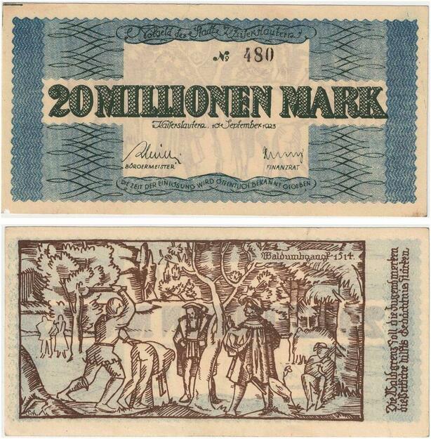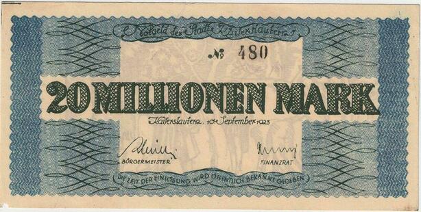 R0579 Germany Banknote Kaiserslautern 20 Millionen Mark 1923 N°78635 UNC