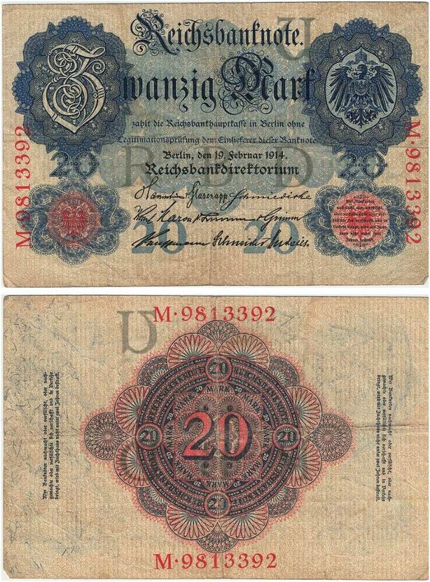 R0583 Germany Banknote WWI 20 Mark 1914 -> Make Offer