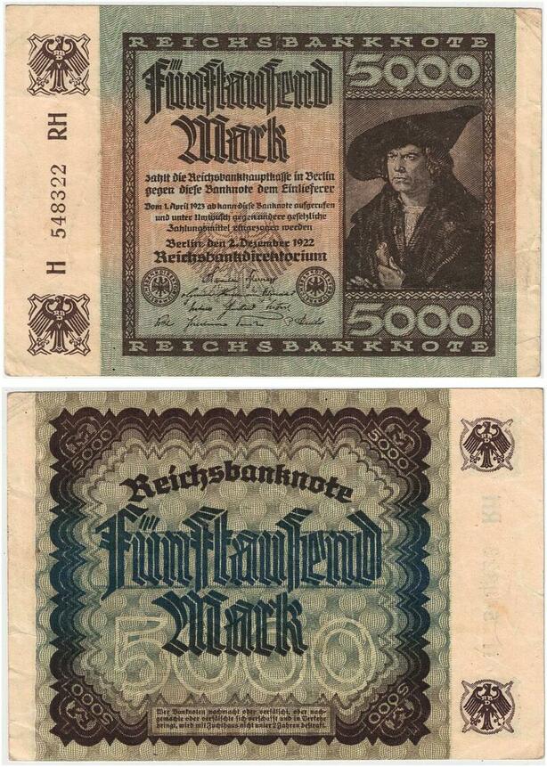 R0606 Germany Banknote Inflation 5000 Mark 1922 AU -> Make Offer