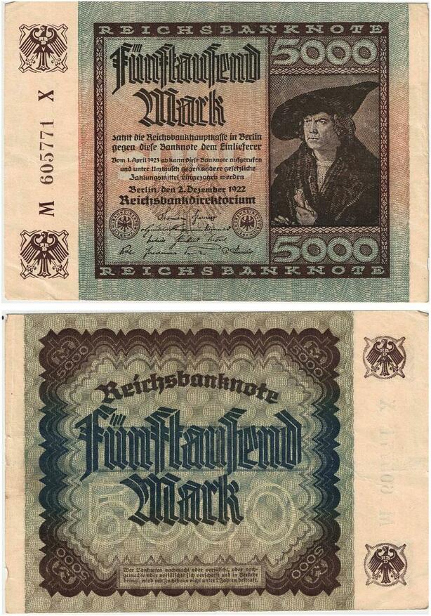 R0609 Germany Banknote Inflation 5000 Mark 1922 AU -> Make Offer