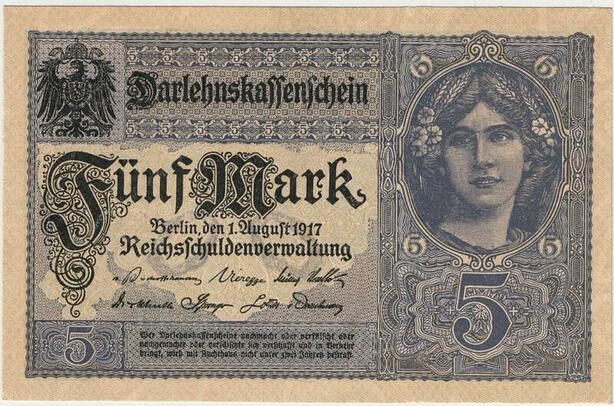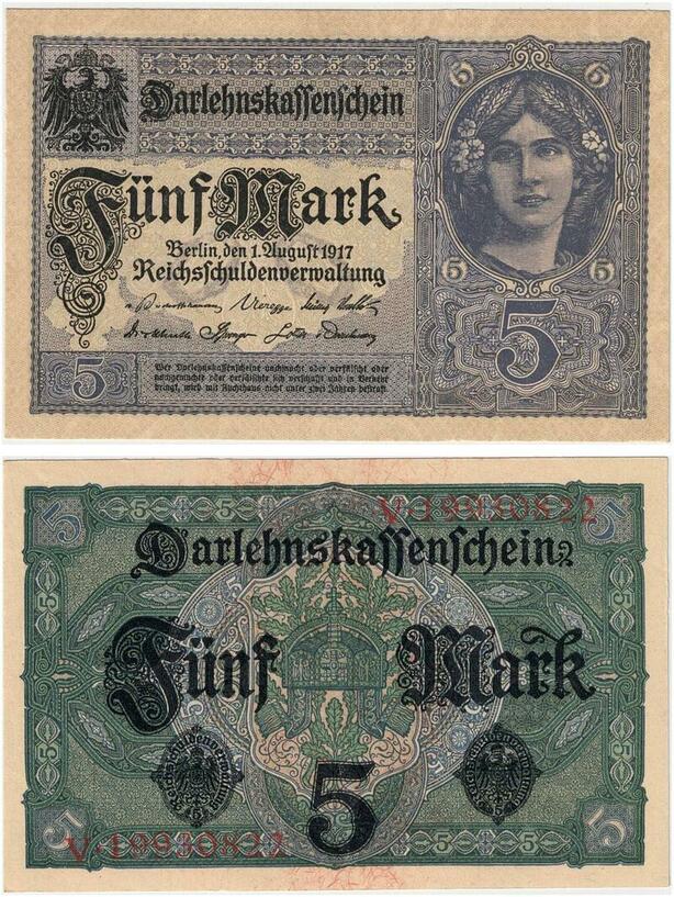 R0618 Germany Banknote WWI 5 Mark 1917 UNC -> Make Offer