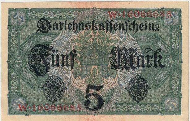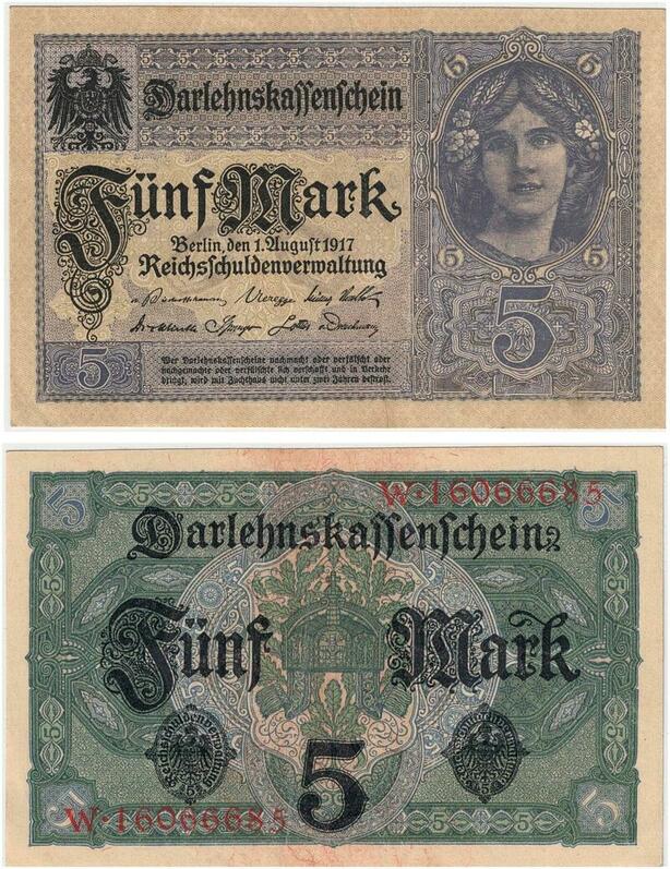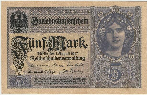 R0619 Germany Banknote WWI 5 Mark 1917 AU+-> Make Offer