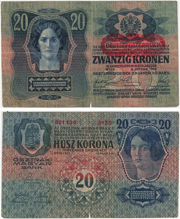 R0629 Austria Hungary Deutschosterreich 20 Korona 1913 -> Make Offer