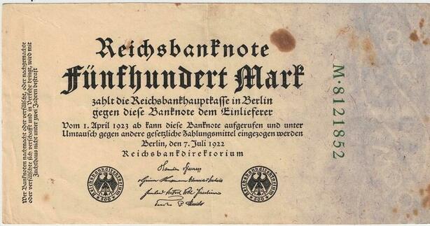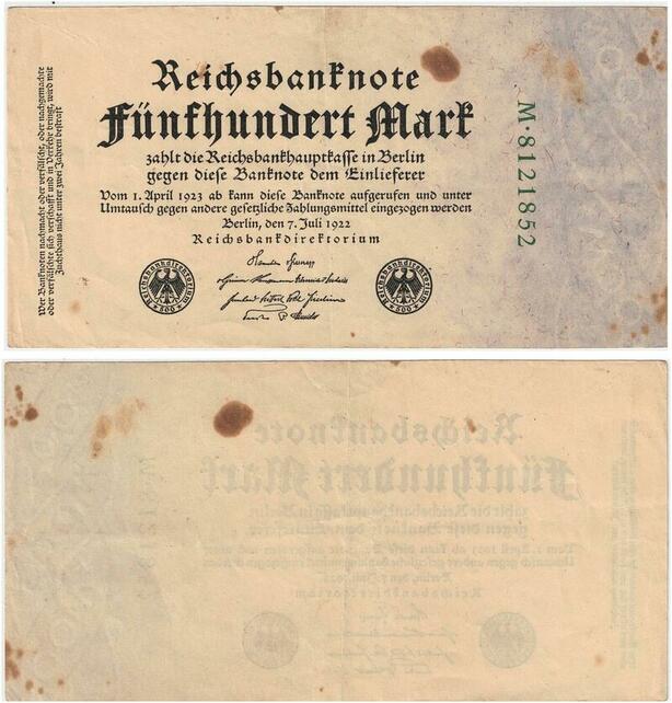 R0642 Germany Banknote Inflation 500 Mark 1922 -> Make Offer