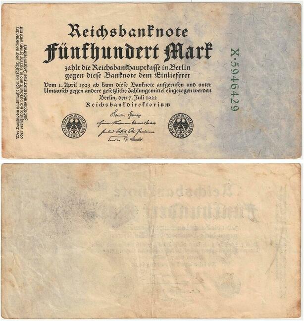R0644 Germany Banknote Inflation 500 Mark 1922 -> Make Offer