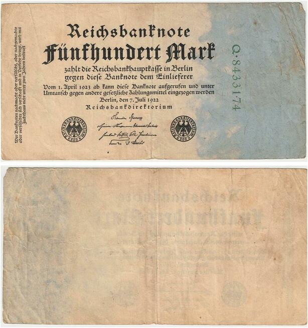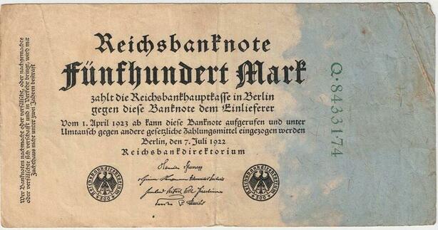 R0645 Germany Banknote Inflation 500 Mark 1922 -> Make Offer