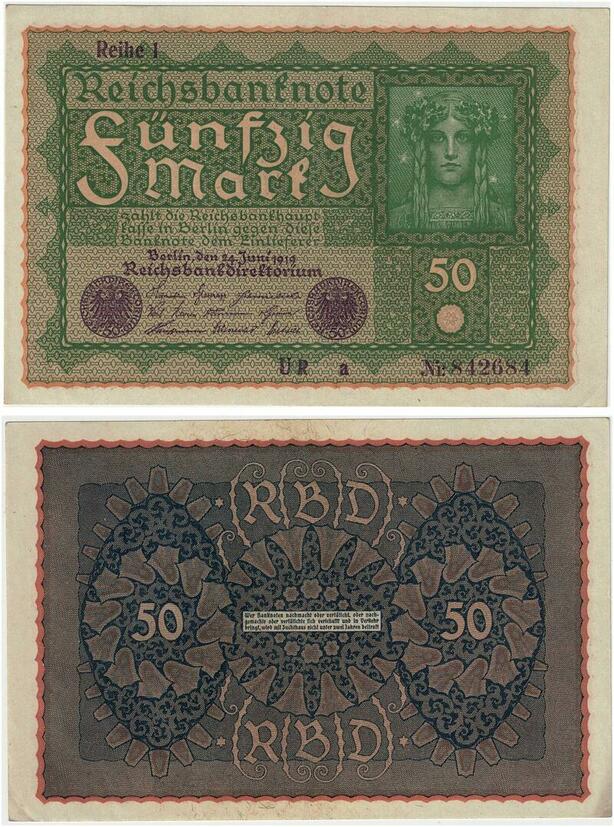 R0684 Germany Banknote 50 Mark 1919 Reihe 1 UNC -> Make Offer
