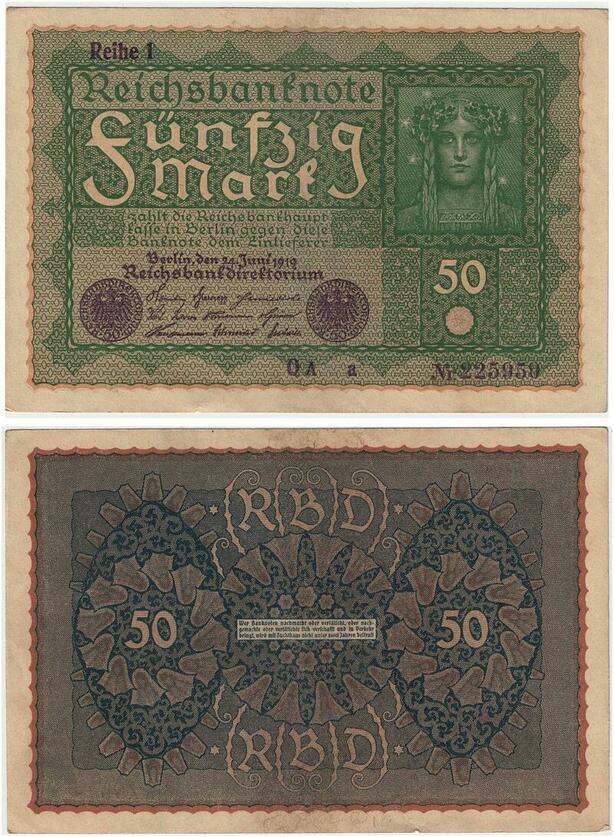 R0687 Germany Banknote 50 Mark 1919 Reihe 1 UNC -> Make Offer