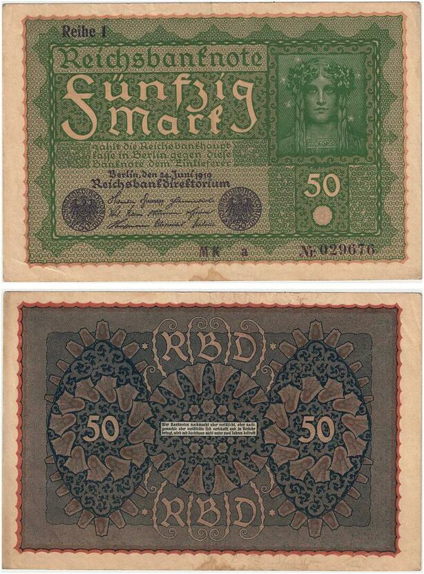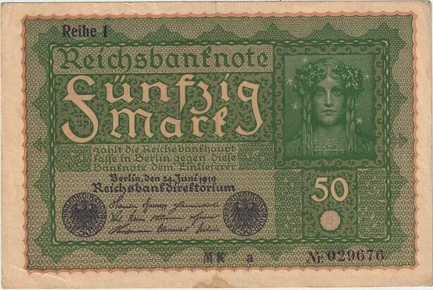 R0688 Germany Banknote 50 Mark 1919 Reihe 1 AU -> Make Offer