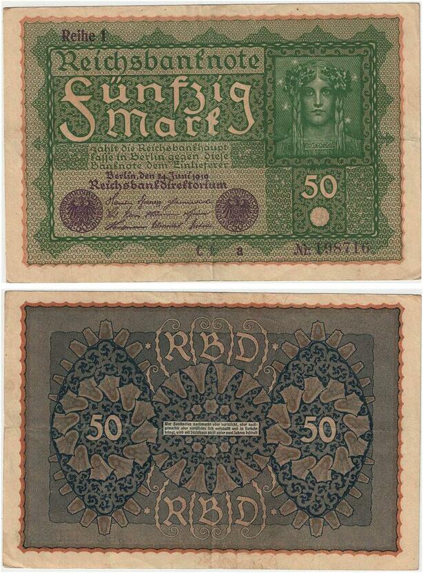 R0721 Germany Banknote 50 Mark 1919 Reihe 1 -> Make Offer