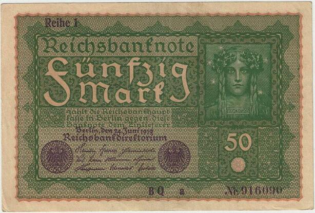 R0727 Germany Banknote 50 Mark 1919 Reihe 1 AU -> Make Offer