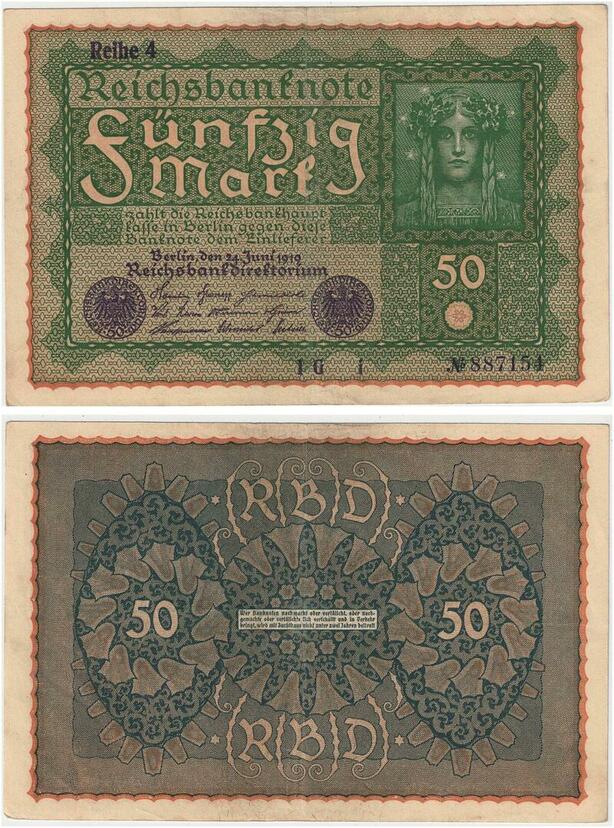 R0731 Germany Banknote 50 Mark 1919 Reihe 4 -> Make Offer