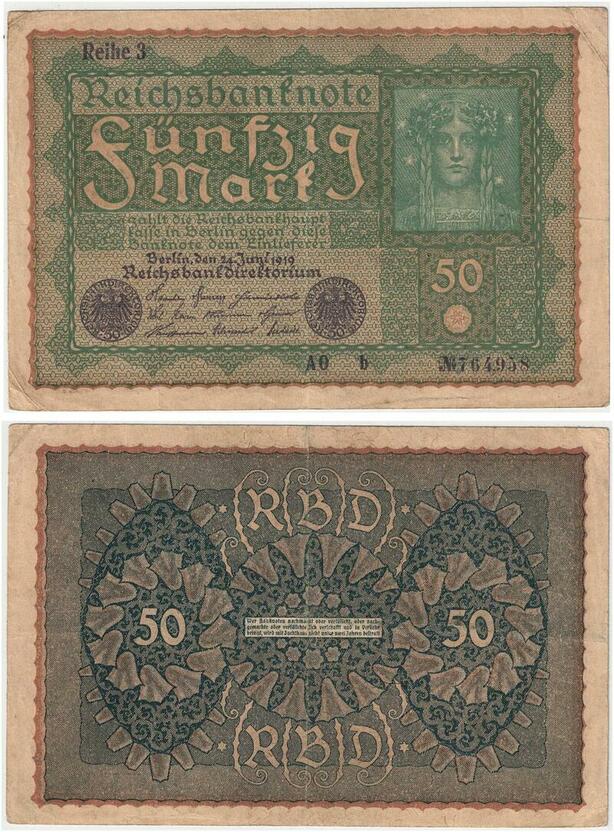 R0742 Germany Banknote 50 Mark 1919 Reihe 3 -> Make Offer